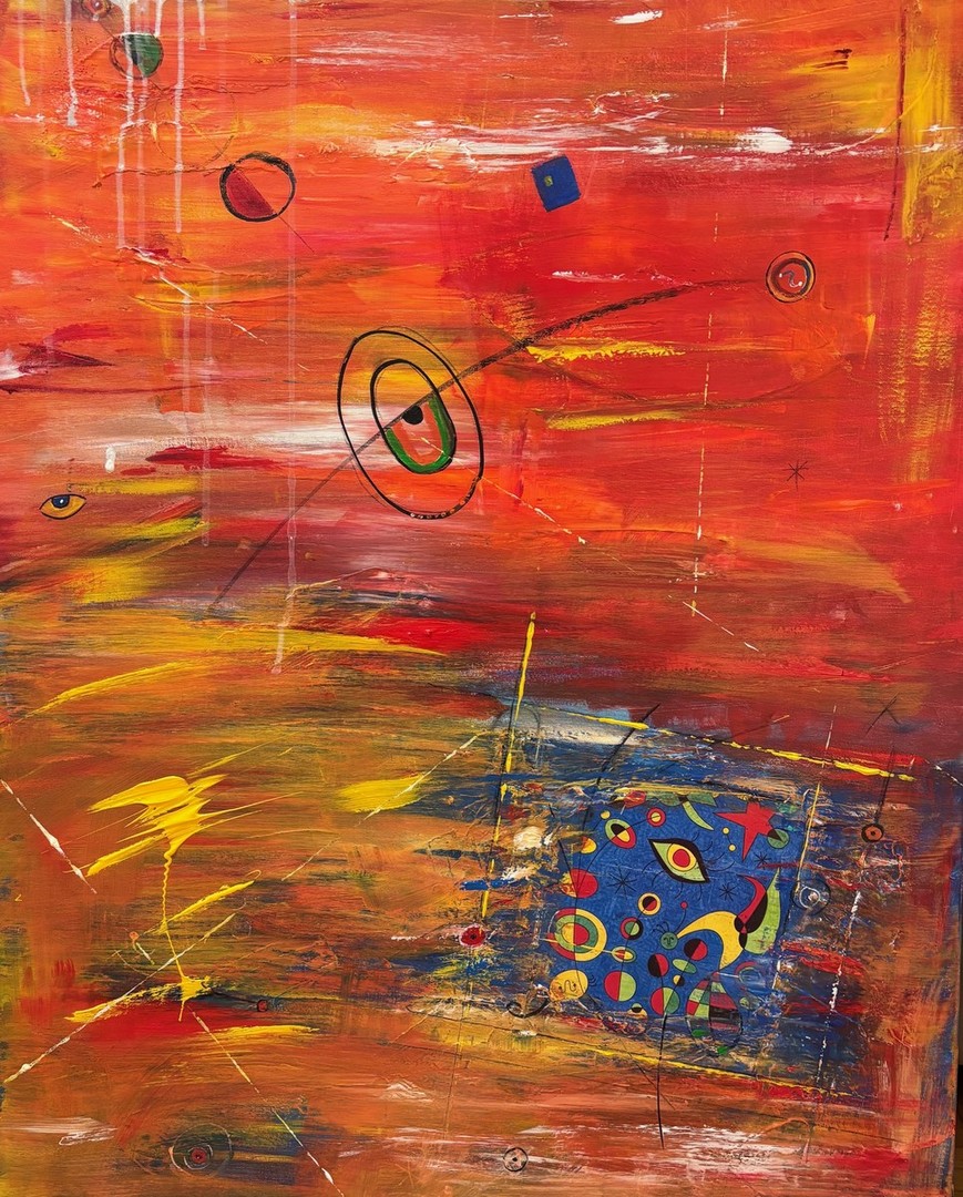 Plasti barv, linije in dinamika ustvarjajo občutek gibanja, kot da slika diha in te vabi naprej. V delo je vključen tudi subtilen fragment, navdihnjen z umetnostjo Joana Mirója, ki simbolično deluje kot pogled skozi razpoko – v drug svet, v drugo dimenzijo zaznavanja. Portal ni odgovor, je povabilo – vsak ga prehodi po svoje.